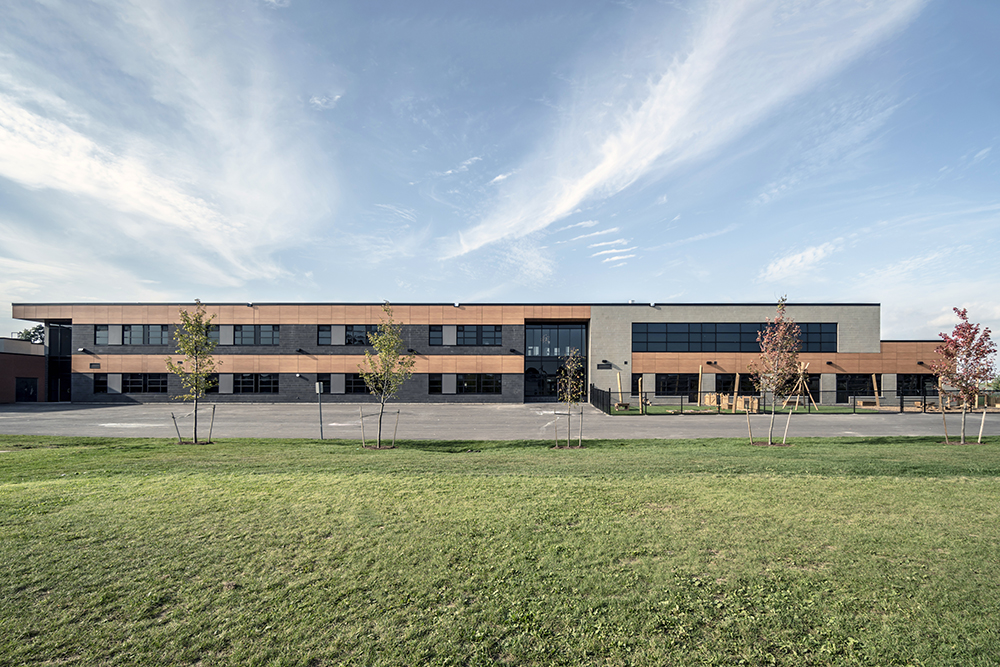 The 3,756m2, 2-storey addition and renovations to Cedar Creek Public School provides accommodation for an additional 190 students with 11 new classrooms, a sheltered kindergarten playground, a new YMCA-run daycare, and a new Early On drop-in centre for families with young children. More than a year of construction has turned it into the school of the future, a community hub with space for infants to teens. It now provides care before and after school, as well as programs on weekdays, evenings and weekends The structure is constructed primarily of load bearing masonry with precast concrete slabs and OWSJ roof. Exterior elevations are “softened” with the inclusion phenolic wall panels in a wood grain finish. Also included were interior renovations to the existing school facility and exterior site works including a new bus drop-off lane and additional parking, landscaping, play areas and asphalt paving. This multi-phased project involved 3 separate user groups (Waterloo Region District School Board, YMCA & EarlyON); each with their own specfic requirements for the finished space. This required enhanced coordination and scheduling procedures with to ensure e This was a very active site adjoined to a busy athletics field. Strict safety procedures were implemented to protect the many young and curious on-lookers; including hoarding of the work areas and scheduling equipment and material deliveries to off hours in order to minimize traffic at the school. In order to minimize disruptions and maintain a safe work zone, our team worked closely with the school principal to create a schedule around the daily school routines (e.g. before and after school activities, bus pick-ups/drop offs, lunch and break times).
